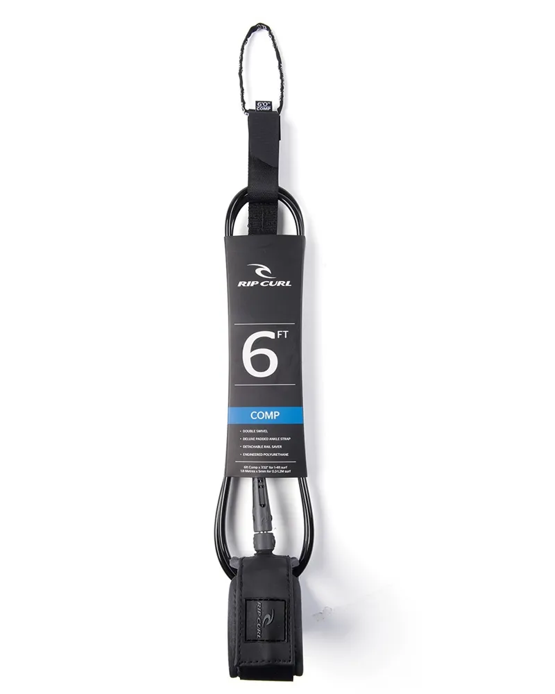 Chaque surfeur a besoin d’un (ou deux) leash fiable et le 6’0 Comp Leash est le meilleur dans ce domaine. Il est conçu en polyuréthane de 5 mm d’épaisseur avec un double pivot, un rail saver détachable, un strap velcro pour cheville matelassé de haute qualité avec technologie surf grip et une poche pour clés intégrée.